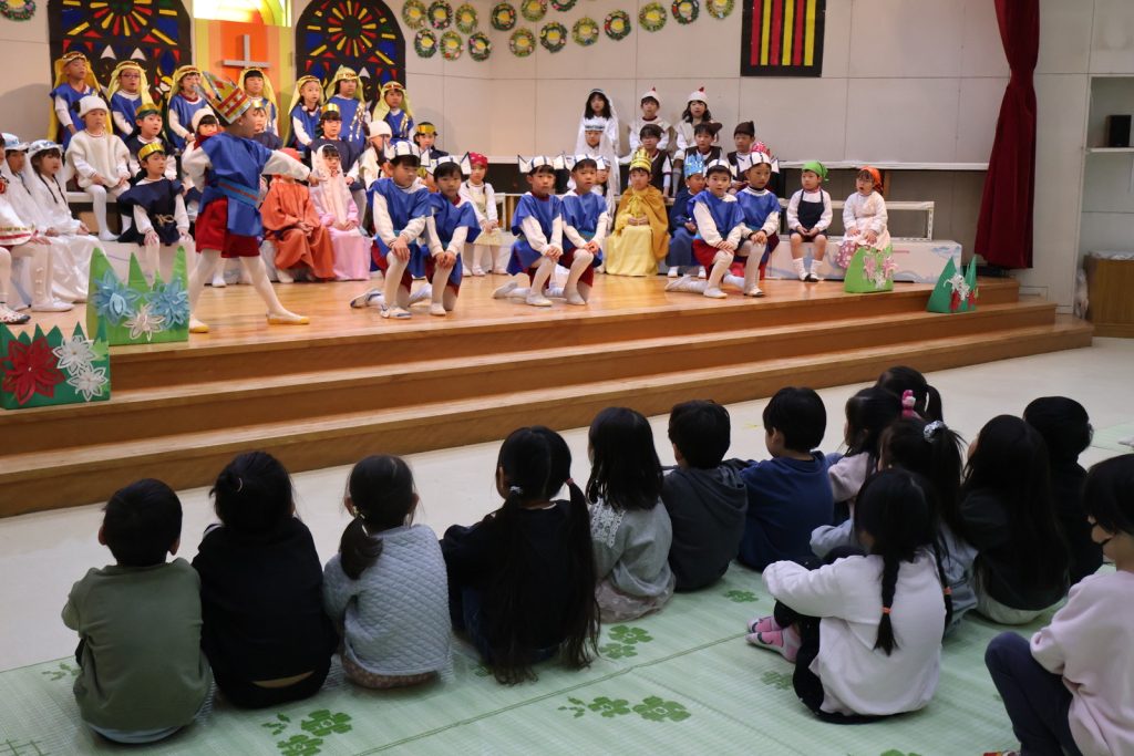 初めは私たちの聖誕劇や演奏を観てもらいました。少し緊張したけれど、真剣なまなざしで見てくれて嬉しかったよ!