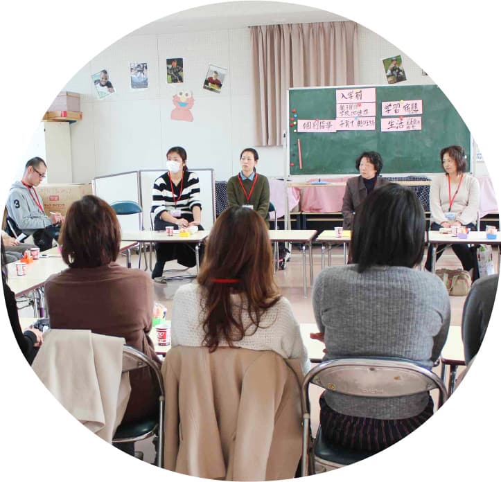 多感な時期の子育ては、不安になることもあります。そんな時は、みんなで解消していきましょう。ふぞく幼稚園では、子育ての不安や悩み事の相談に応じたり、専門の教授によるアドバイスを受けることができます。また、保護者の皆様同士の交流、情報交換などを持つ場として、にこにこプラザ、親子わくわく教室(要事前予約)を開催しております。