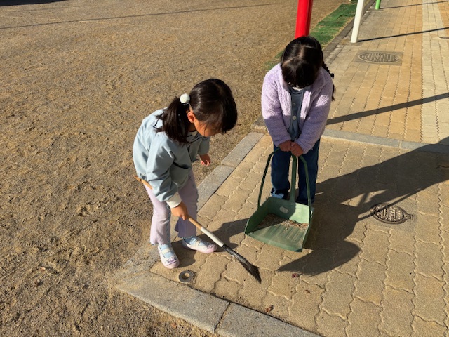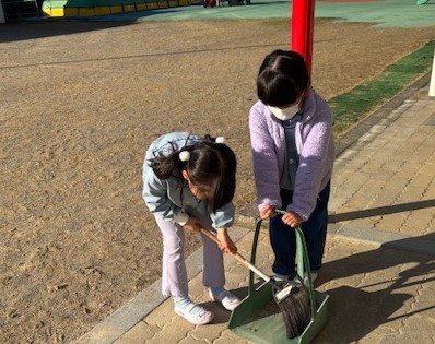 12月9日(火)の朝、2人の年長園児が掃除をしてくれました。誰かにお願いされたわけでもなく、自分達で気づき掃除をしはじめました。(すごい!)4月から小学校に入学しても活躍すること間違いなしです。